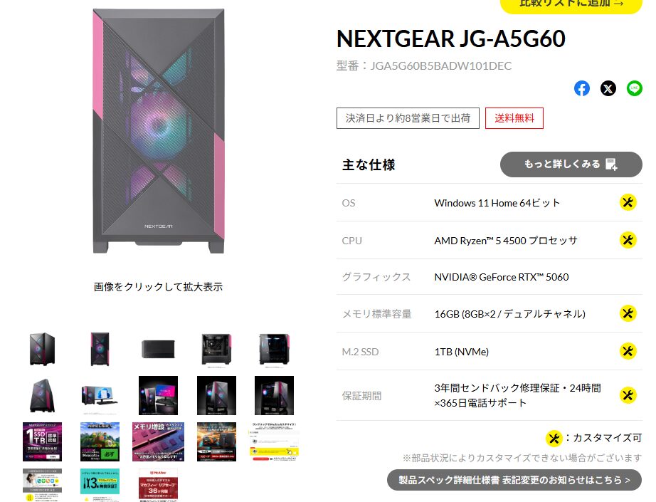 NEXTGEAR JG‑A5G60 BTO ゲーミングPC