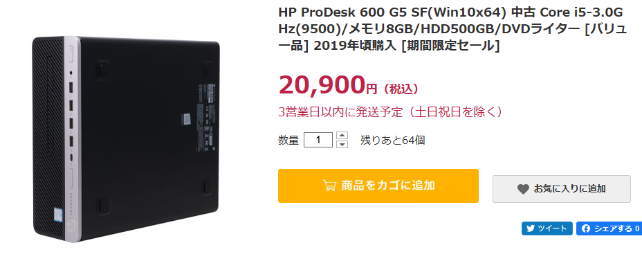 中古事例としては、「Ryzen5 3500 + GTX1060 6GB + メモリ16GB + SSD512GB」の構成が5万円あたりで取引されている例が報告されています。